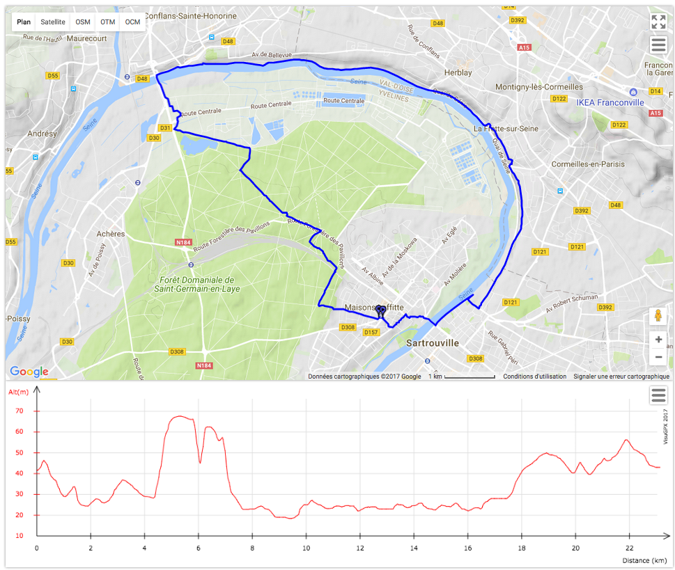 Le parcours de termine par une longue remontée de la berge vers Herblay, un espace verdoyant désormais totalement réhabilité pour les promeneurs à pied ou à vélo. Il existe de nombreux bistrots et glaciers pour vous rafraîchir . Ce parcours de 23 km ne présente pas de difficultés, juste une belle grimpette sur le coteau dominant la Seine au départ.