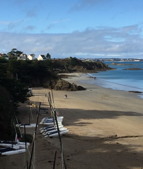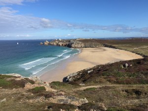 J3 Une étape de 26 km ou deux étapes de 13 km. Mon choix : Port Coton – Herlin 13,56 km. Dénivelé 534m+/522m – Cette journée de rando revient dans le même décors que la première avec ses incalculables , épuisantes montées et descentes dans les criques, de quoi se torturer les gambettes ! Là encore pas de point d’eau ni de ravitaillement . Vous arrivez sur deux magnifiques plages cachées dans des criques sablonneuses . La première vous conduira jusqu’au bourg de Kervarigeon distant d’un kilomètre environ. La seconde, la plage d’Herlin est aussi à un kilomètre de cet autre bourg . C’est ici, sur la D25, que vous prendrez le bus n°3 pour rentrer au Palais. Prudence , cette route étroite est très fréquentée et fortement déconseillée aux vélos .