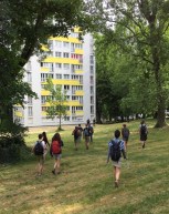 Nous avons rendez-vous en ce 14 juillet avec le Big Jump. Cet événement à échelle européenne vise à promouvoir le retour de la baignade en rivière grâce à une purification progressive des cours d’eau. Pour rejoindre le spot sur les berges de la Varenne-St-Hilaire, nous nous sommes servis de la servitude de marchepied (lois de 1965-2006), un chemin à l’accès autorisé aux bateliers, pêcheurs…, pour éviter un détour. On suivra ainsi la berge en poussant l’une après l’autre les portes des jardins reliant les maisons qui bordent la Marne, avant de franchir finalement le pont de Chennevières. Les plus courageux d’entre nous se baigneront dans un périmètre aménagé par l’organisation sous la surveillance de la brigade fluviale et de la Protection civile.