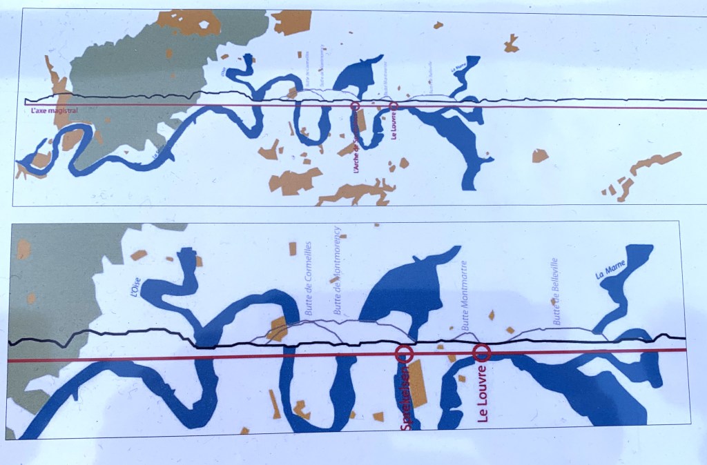 Ce concept a été imaginé par Catherine de Médicis lorsqu’elle fit construire le Palais des Tuileries dans le prolongement du Louvre. Cette perspective remarquable partait du célèbre musée, passait sous l’arc de triomphe du Carrousel et touchait l’Obélisque de la place de la Concorde. Puis, il continuait jusqu’à l’Arc de Triomphe de la place de l’Étoile et se prolongeait en banlieue jusqu’à Nanterre. Nous avons donc patiemment remonté cet axe, en nous attardant sur l’histoire de quelques sites marquants, et surtout en écoutant les exposés des architectes, des paysagistes et des urbanistes, ou des chercheurs.