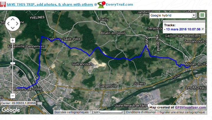 Cette randonnée dans le Vexin sud vous fera découvrir une partie très agricole de ce parc naturel de 65.000 ha . Les champs s’étendent ici à perte de vue à l’horizon, un décors parfois un peu monotone strié des lignes à haute tension qui partent de la centrale de Porcheville. L’itinéraire relativement plat ne comporte pas de difficulté . Très à découvert, je vous conseillerais de l’effectuer par température clémente. L’hiver cette étendue peut être balayée par un vent d’ouest glacial en offrant très peu d’abri. En été , au besoin il est possible de trouver de l’eau au cimetière de Fontenay Saint-Père à 200 m de l’église . L’arrivée à Mantes-La-Jolie se fait en traversant la Seine. Une nouvelle passerelle double le pont et offre un joli point de vue sur l’ancien ouvrage . Si ce n’est déjà fait , ne manquez pas de visiter la splendide collégiale du XII et XIIIe siècle qui ressemble comme une soeur à celle de Notre-Dame.