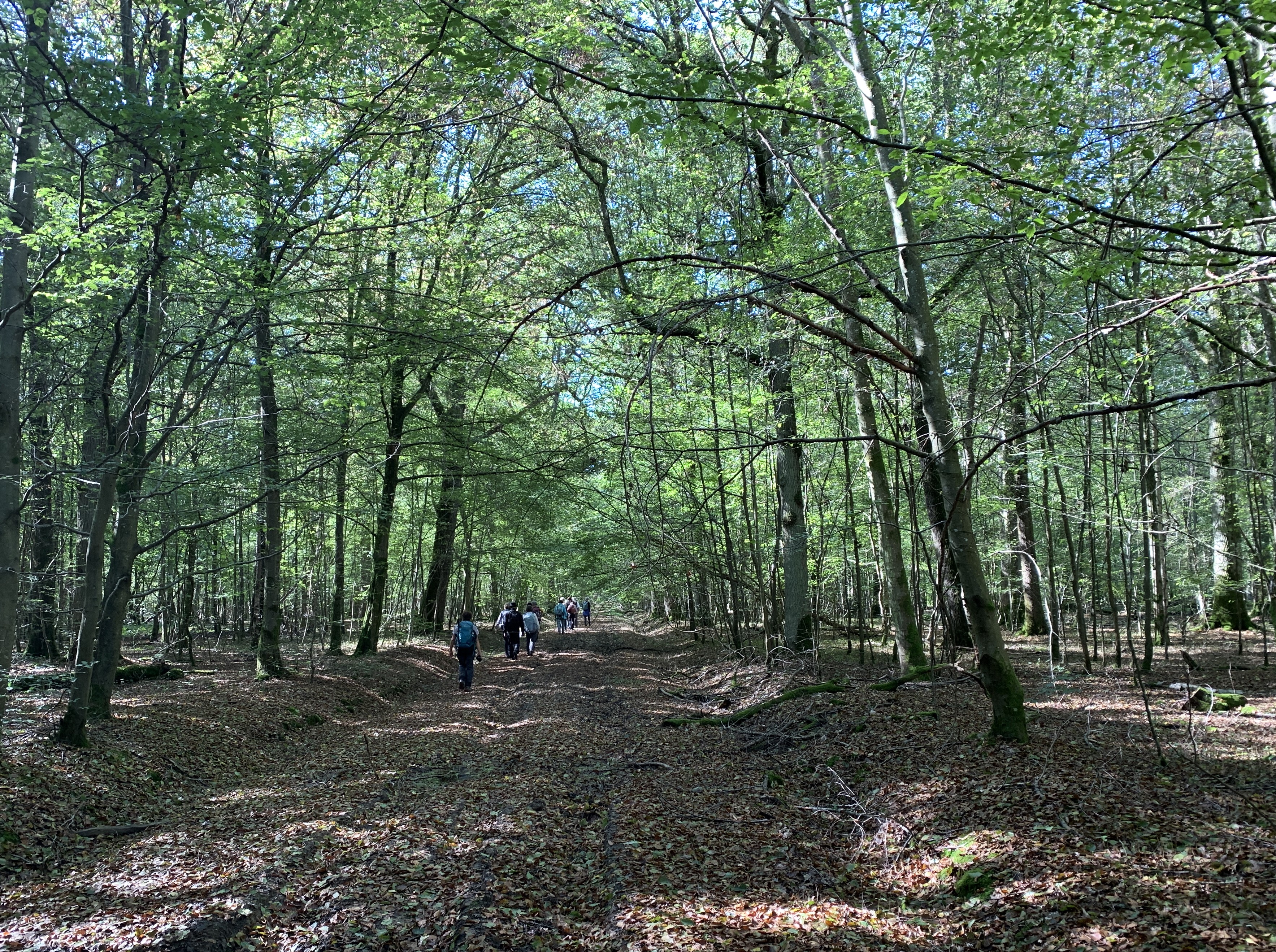 L’itinéraire de 20 km concocté par Christine de Randif a séduit une vingtaine de marcheurs, un parcours ni trop long , ni trop tôt ni trop loin pour rejoindre la gare de Montfort l’amaury-Méré sur la ligne N au départ de Montparnasse. La petite ville de province se réveille sous le soleil , les premières terrasses de café accueillent les lève-tôt alors que les belles boutiques s’apprêtent à recevoir la vague dominicale de promeneurs. Nous atteignons rapidement la forêt de Rambouillet en piquant vers le sud après une courte traversée d’une plaine agricole. L’automne signe déjà la métamorphose de la nature dans une palette de couleurs extravagantes comme pour effacer les brûlures à blanc de l’été dont l’humus desséché sur le sol porte encore les traces.