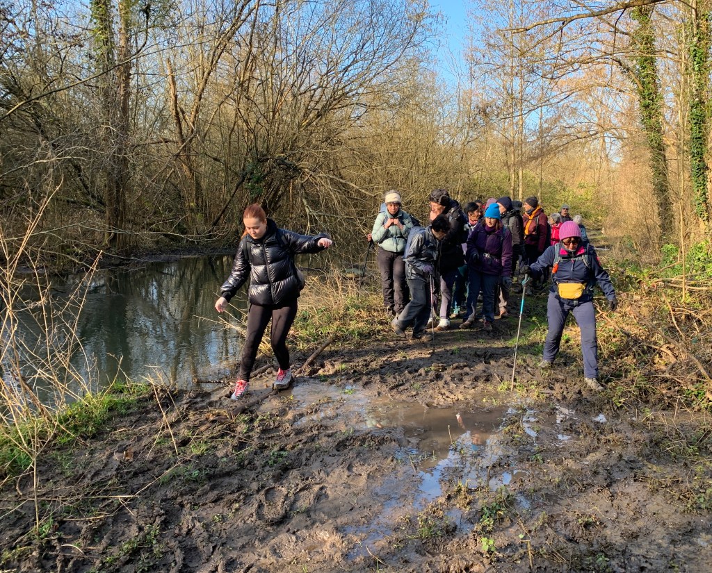 Les pluies récentes ont fait débordé la Vione au départ de Boisserie – Détour par le PR plus au sud du tracé
