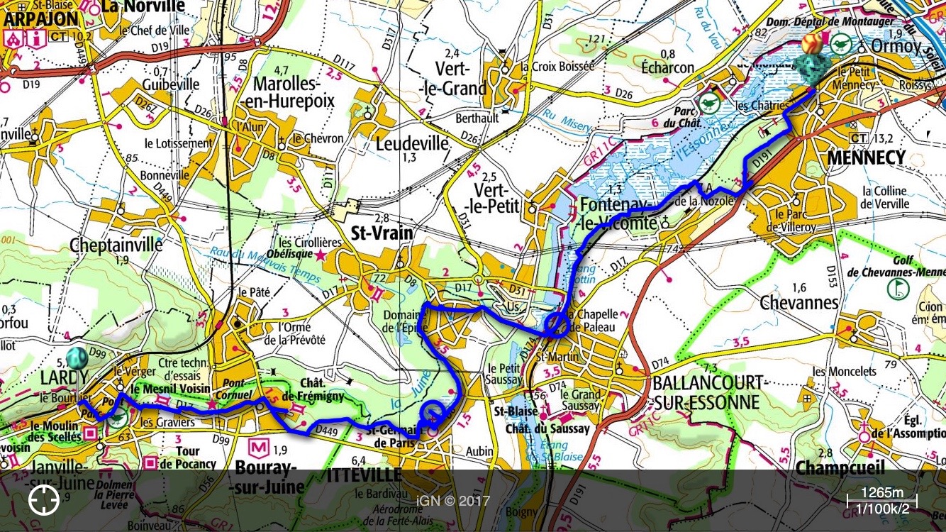 Nous revoici dans l’Essonne (91) , toujours dans un programme de rando de gare à gare. Cette fois-ci au départ de la Gare de Lyon (RER D) pour rejoindre celle de Boutigny-sur -Essonne (Comptez une bonne de heure de trajet, pass Navigo ou ticket Mobilis 5 zones 17,60€ – Attention ! Fréquence d’un train par heure au retour par la Ferté-Alais).