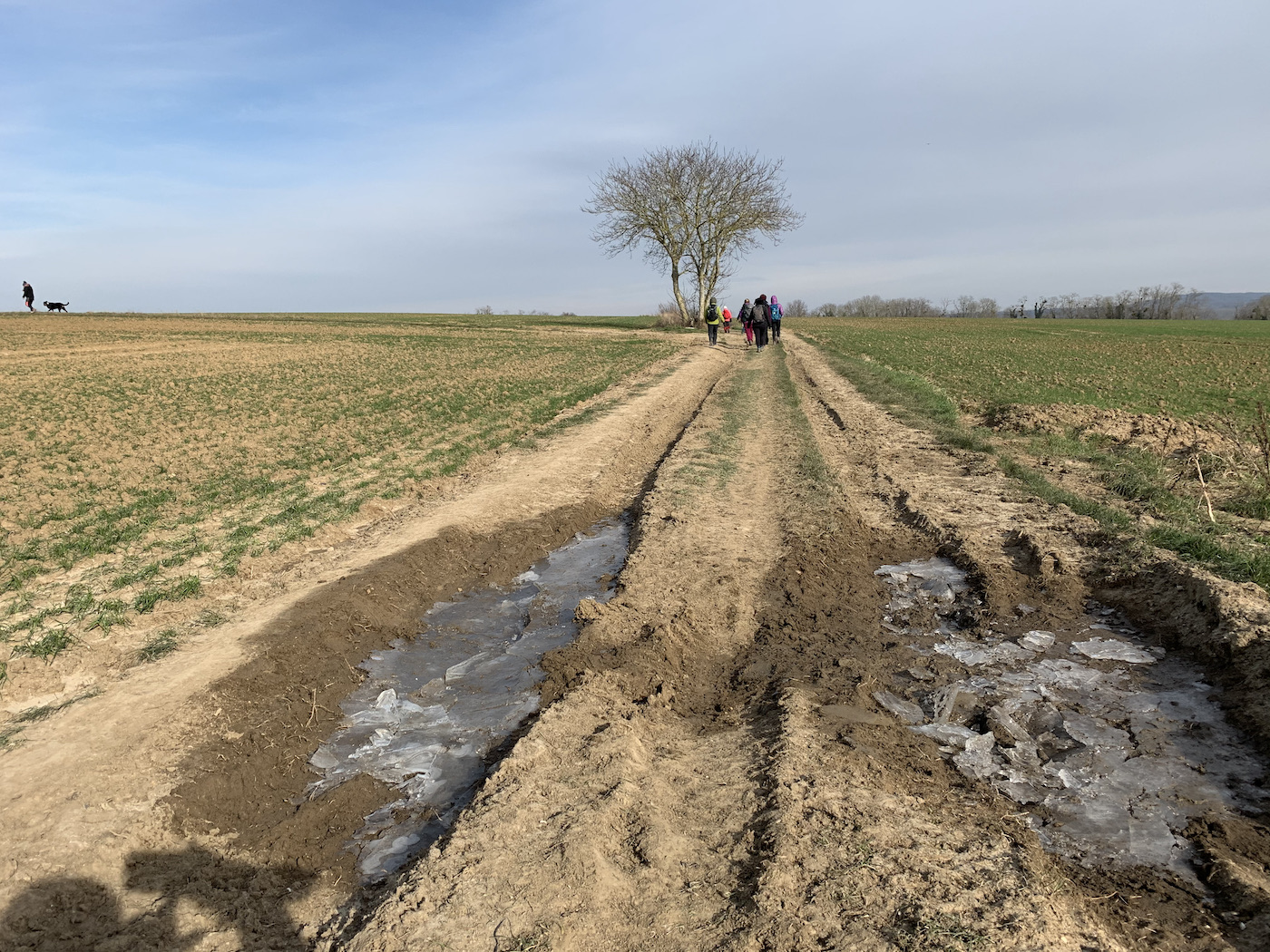 Les immenses étendues agricoles du Vexin balayées par une brise glaciale sont toujours propices à la méditation, à l’introspection mais plus encore chez certains à l’interrogation : « qu’est ce qu’on fout ici par une température ressentie de -4° C au milieu de terres labourées et où le premier bosquet pour soulager sa vessie se trouve à deux kilomètres ??! » . Seul le randonneur endurci par des années d’errance hivernale en Ile-de-France peut y répondre et renoncer à un dimanche douillet chez lui.