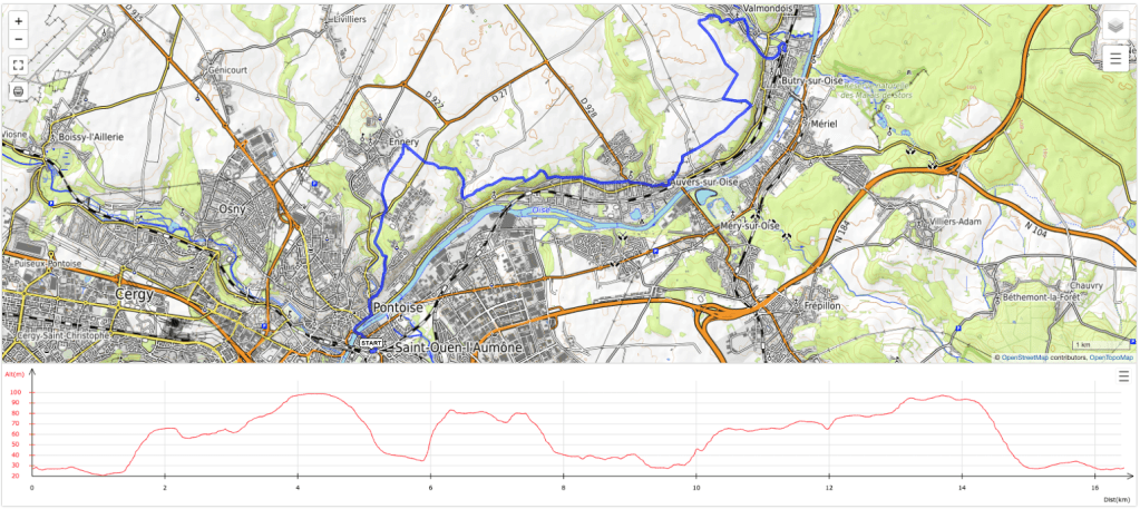 Pour ceux qui veulent poursuivre la découverte du Parc Régional Naturel du Vexin, je vous propose cette belle randonnée de gare à gare . Ce parcours de 22 km environ débute et s’achève à la gare d’Auvers-sur-Oise. Il emprunte une longue portion du GR1 dans la forêt du Bois le Roi, étroite et longue bande qui remonte nord-ouest. Vous attendrez les quartiers nord de Valmondois avant de remonter versd Nesles-La-Vallée. Cette boucle passe ensuite par la jolie ville de Parmain, voisine de l’Isle-Adam sur l’autre rive de L’Oise. Vous aurez d’ailleurs tout le temps de d’y flâner car cet itinéraire la suit sur d’interminables kilomètres! Cette longue randonnée ne présente pas de difficultés particulières. Vous passerez toutefois avec prudence en zone de chasse. Le chemin peut être très boueux en temps de pluie.