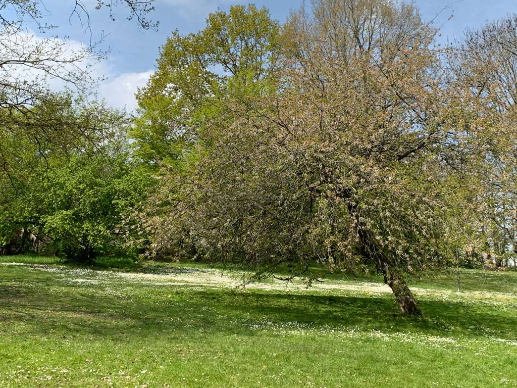 Nous sommes au printemps, les cerisiers japonais offrent un spectacle grandiose et provoquent très tôt une affluence massive de réservations pour un déjeuner abrité sur l’herbe. La traversée du domaine est agréable et débouche sur l’entrée à Chatenay. Les curieux peuvent visiter au passage la belle église Geneviève en s’incrustant discrètement parmi les paroissiens de la messe dominicale.