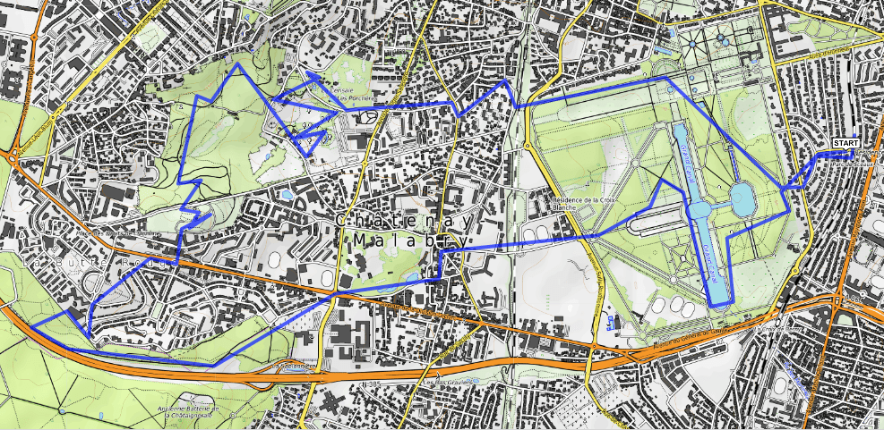 Direction la banlieue sud de Paris pour une randonnée dite de « proximité du confiné » ! Départ de la gare « Parc de Sceaux » ,RER B (à ne pas confondre avec la gare de Sceaux). Le dimanche matin le parc est déjà pris d’assaut par les joggers qui s’entraînent autour des bassins de l »Octogone et le Grand Canal .